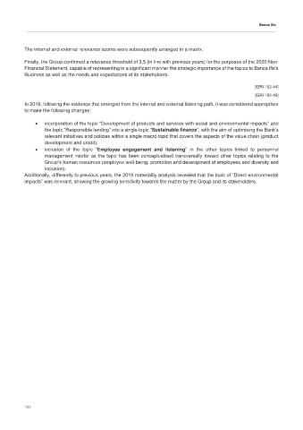 Financial Statement, capable of representing in a significant manner the strategic importance of the topics to Banca Ifis's